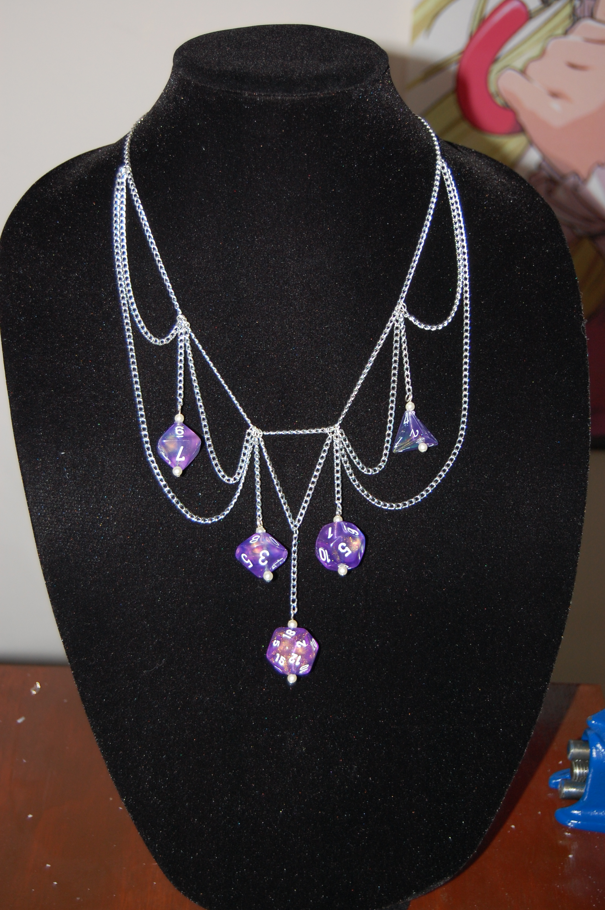 Also on a cool note, Sam has decided to try experimenting with Chain Mail and die/dice Jewelry Tyler & I wanted him to be crafty with us. Unless it involved some power tools, Sam wasn’t really biting. I mentioned I had a bunch of Dice (at home) and that I wanted to make a huge necklace to go with it- I bought the Costume inCairo2 years ago, with it already having D8’s on it. I needed to add in D20’s, D4’s, etc to make it complete! He had some extra dice lying around, and after a trip to Michaels, Home Depot, and the Pizza Parlor he came up with the earrings in a few mins.